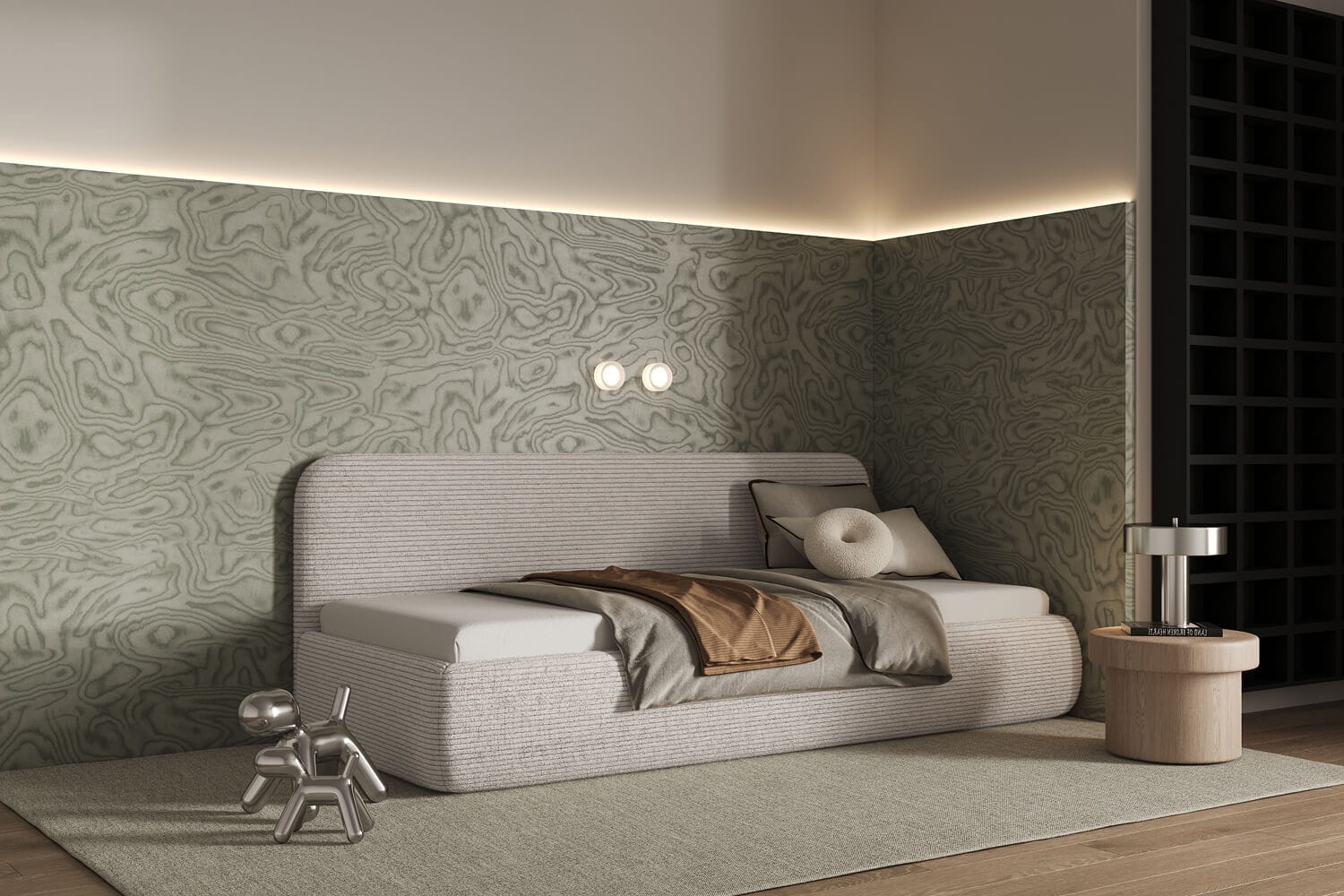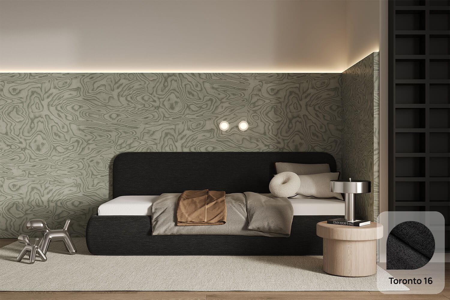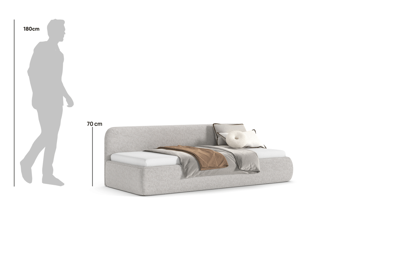 Die minimalistische Form und klassischen Linien machen Bao Solo zu einer perfekten Ergänzung für moderne wie auch traditionelle Räume. Dank der großen Stoffauswahl lässt sich das Bett leicht an deinen Stil und Raum anpassen.