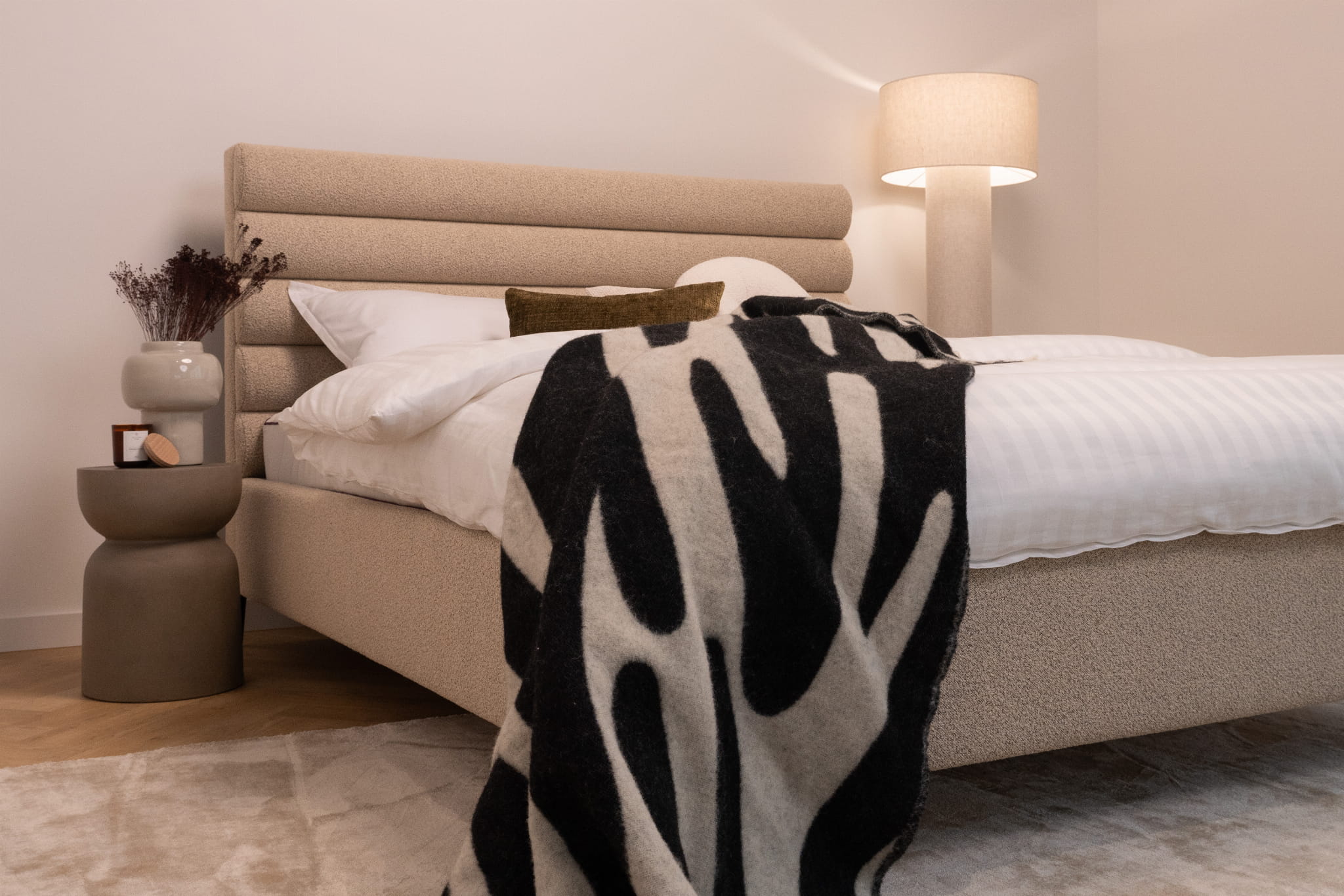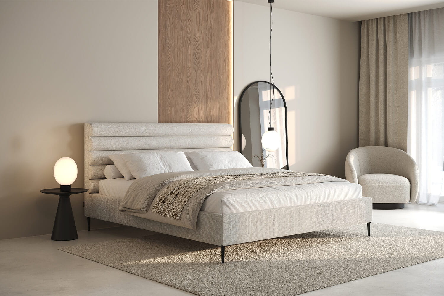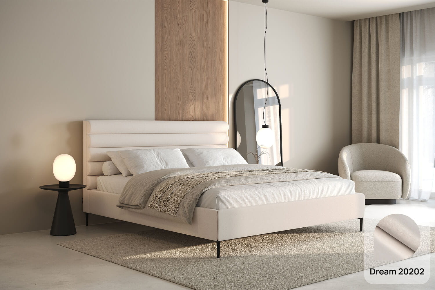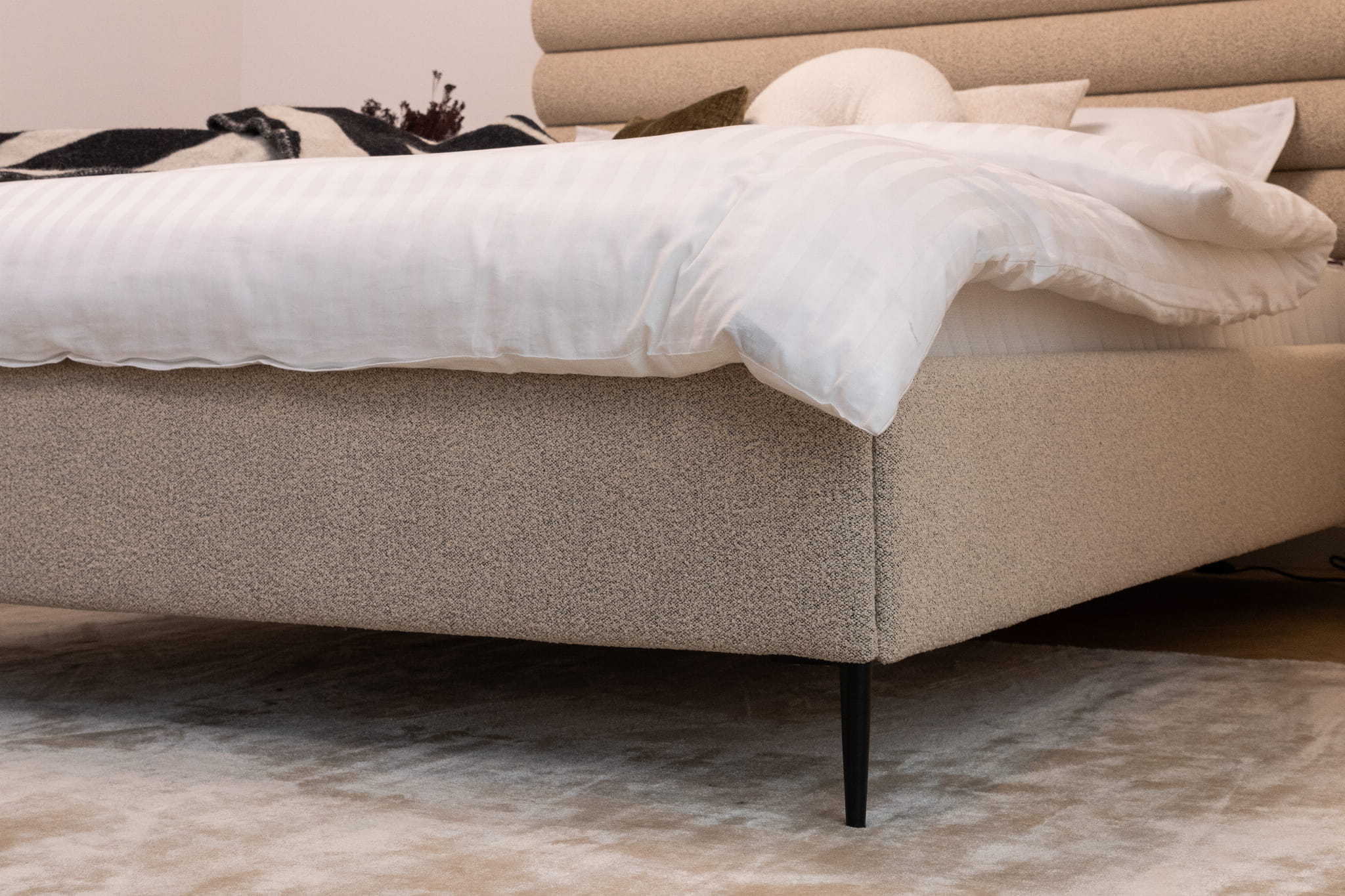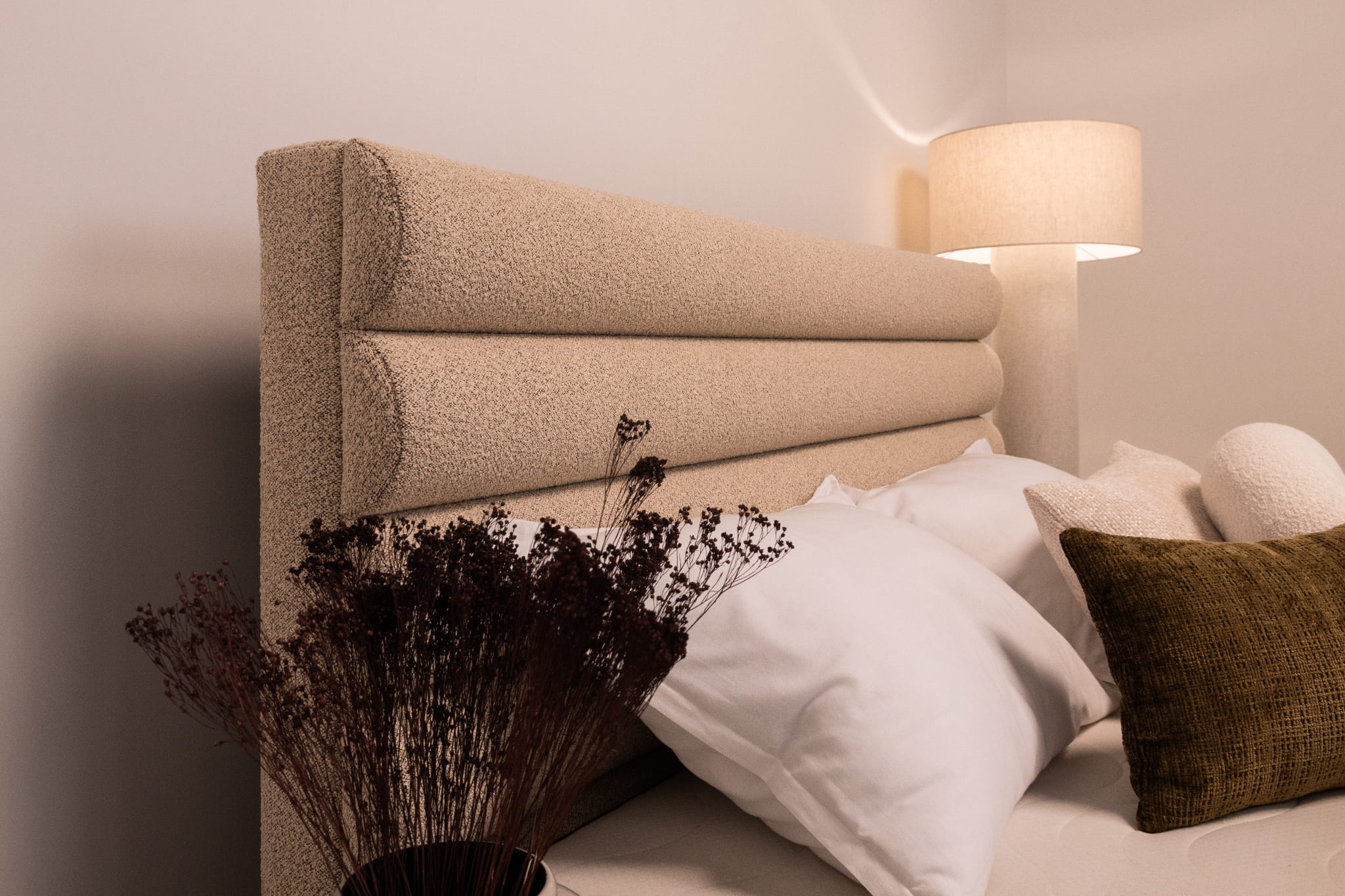 Das Bett Leno Lite von MyBed ist eine harmonische Kombination aus minimalistischem Stil und außergewöhnlichem Komfort, die eine einzigartige Atmosphäre in Ihr Schlafzimmer bringt! Das wahre Highlight dieses Modells ist das weiche Kopfteil mit horizontalen Polsterrollen, die ein Gefühl von Gemütlichkeit und Weichheit vermitteln – als würde es zum Entspannen einladen. Dieses Kopfteil begeistert nicht nur durch sein Design, sondern bietet auch eine bequeme Rückenlehne – perfekt für entspannte Abende oder den morgendlichen Kaffee im Bett. Dank seiner dezenten Linien fügt sich das Leno Lite-Bett perfekt in verschiedene Einrichtungsstile ein.