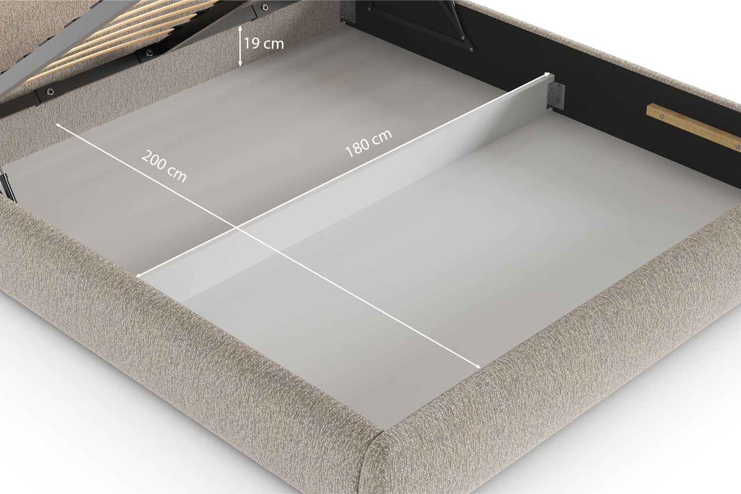 Sorge für ruhigen Schlaf und Ordnung im Schlafzimmer. Die Basis des Bettes ist ein solider Metallrahmen, der Stabilität und Zuverlässigkeit über Jahre garantiert. Für hohen Nutzungskomfort sorgt der Lattenrost mit 34 flexiblen Federleisten (5 cm breit, im Abstand von 7 cm angeordnet), die optimal mit der Matratze zusammenarbeiten und ihr eine ideale Unterstützung bieten. Abgerundet wird das Ganze durch einen praktischen Bettkasten – dank Gasdruckfedern lässt sich der Lattenrost leicht anheben und erfordert keine Kraft.