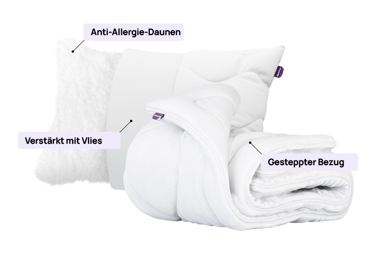 - Anti-allergene Daunen - aus synthetischen, silikonisierten Polyesterfasern zum Schutz vor Verunreinigungen. Schützt perfekt vor dem Wachstum von Schimmel, Pilzen und Hausstaubmilben.
